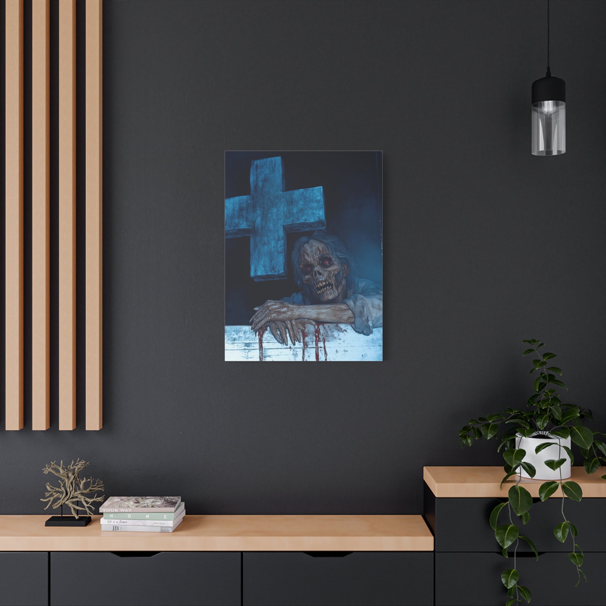 Macabre Zombie Wall Art Canvas, Horror Home Decor, Spooky Room Decoration, Unique Halloween Gift, Creepy Artwork for Living Room